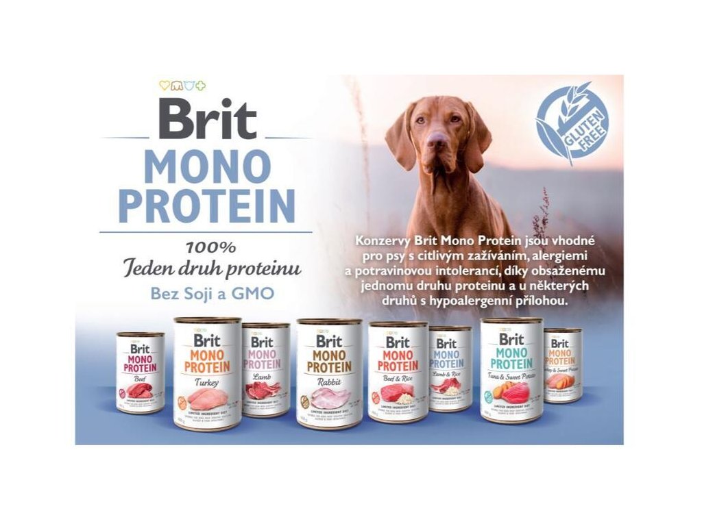 Aby měli chlupáči s citlivým zažíváním, intolerancí nebo přímo s alergií, v bříšku jako v bavlnce, musíme jím servírovat takové menu, které neobsahuje žádný ze škodlivých alergenů. Nalezení toho, co škodí může být běh na dlouhou trať, ve kterém nám mohou pomoci právě konzervy s jedním druhem proteinu. Můžeme jednoduše vyzkoušet, jak na který protein pejsek reaguje a vylučovací metodou vyřadit vše škodlivé. Protože někteří psi s citlivým zažíváním špatně tráví větší kousky masa či vnitřností, mají konzervy Brit Monoprotein konzistenci jemného paté – lépe se tráví a snadno je přijímají také psí senioři, kteří mají problém se zoubky.