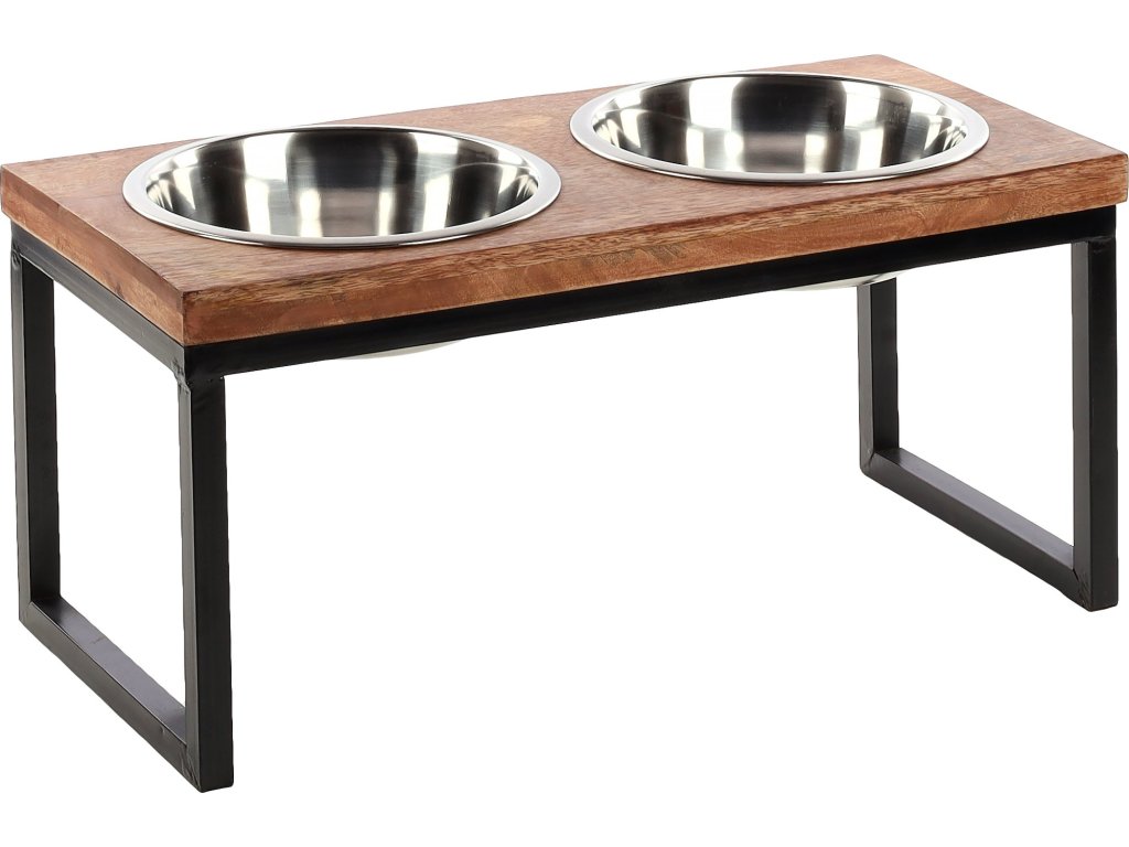 Dřevěný stojan s nerez miskami DUO DINNER TOMMY