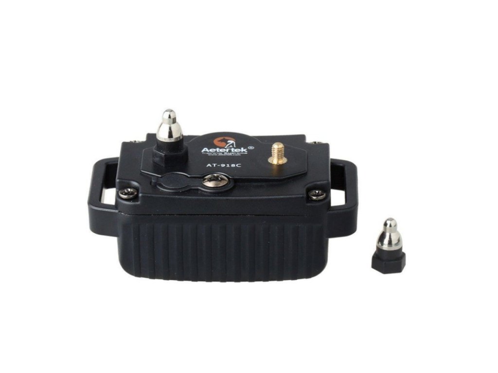Elektronický výcvikový obojek pro psa AETERTEK AT-918C je profesionální obojek se zcela vodotěsným přijímačem, kterému nevadí voda, sníh ani bláto. Vysílač i přijímač v obojku se dají dobíjet pomocí nabíječky, takže nebudete muset myslet na náhradní baterie. Kromě devíti režimů intenzity vibrace, elektrických impulzů a zvukové signalizace je obojek také vybaven protištěkací funkcí.