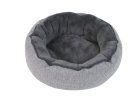 Kulatý pelíšek s pohodlným zvýšeným okrajem tvoří čalounický materiál a coral fleece. Výplní je duté vlákno.