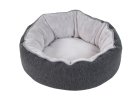 Kulatý pelíšek s pohodlným zvýšeným okrajem tvoří čalounický materiál a coral fleece. Výplní je duté vlákno.