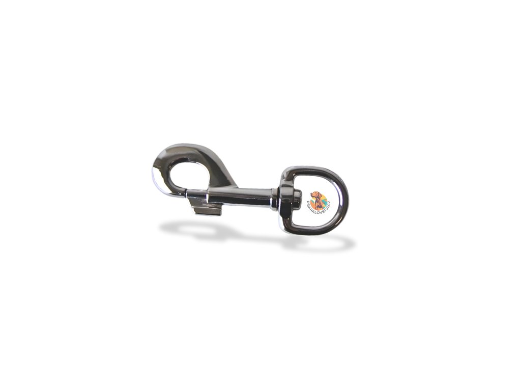 Karabina k vodítku, s půlkulatým očkem 7,5cm délka karabiny /1,6cm šíře oka. Karabina je vyrobena z chromu, což je materiál známý svou vysokou odolností proti korozi a mechanickému poškození. Chromované povrchové úpravy jsou také oblíbené pro svůj lesklý a esteticky příjemný vzhled, který se snadno udržuje a je odolný vůči různým povětrnostním vlivům.