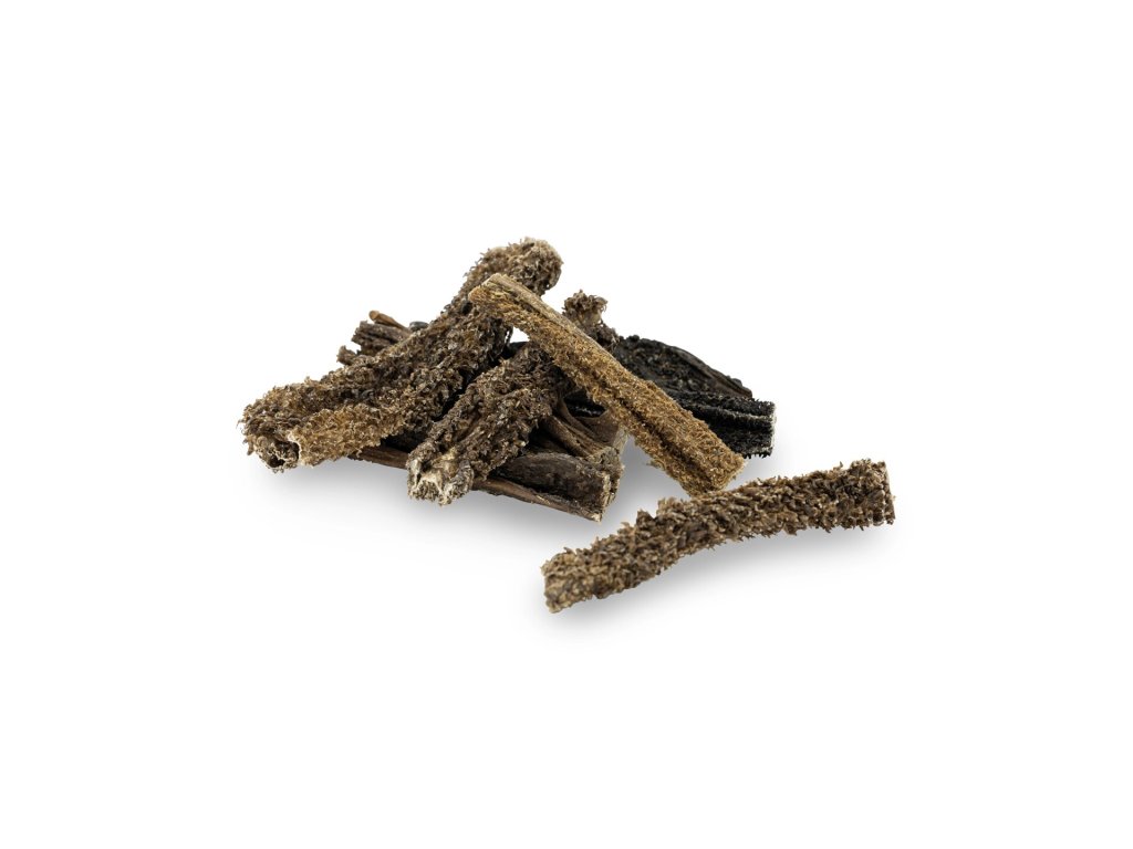 100% sušený hovězí žaludek. Žádné konzervanty, žádná barviva, žádný cukr. Jen šetrně sušené teplým vzduchem, aby zůstaly zachované živiny.
