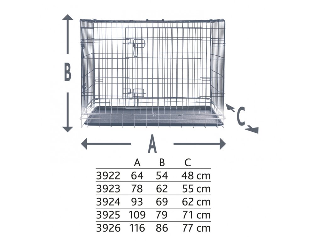 Skládací klec pro psa. Prostorově úsporné skladování. Bezpečné místo pro vašeho psa. Dvoje dveře, které mohou být otevřeny bokem a zepředu.