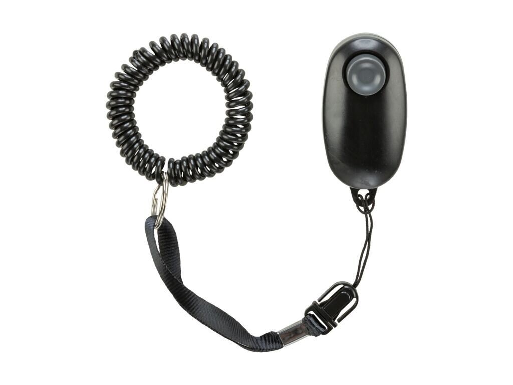 spirálové lanko pro navléknutí na zápěstí umožní mít klikr vždy po ruce