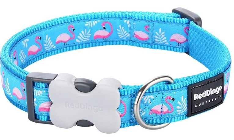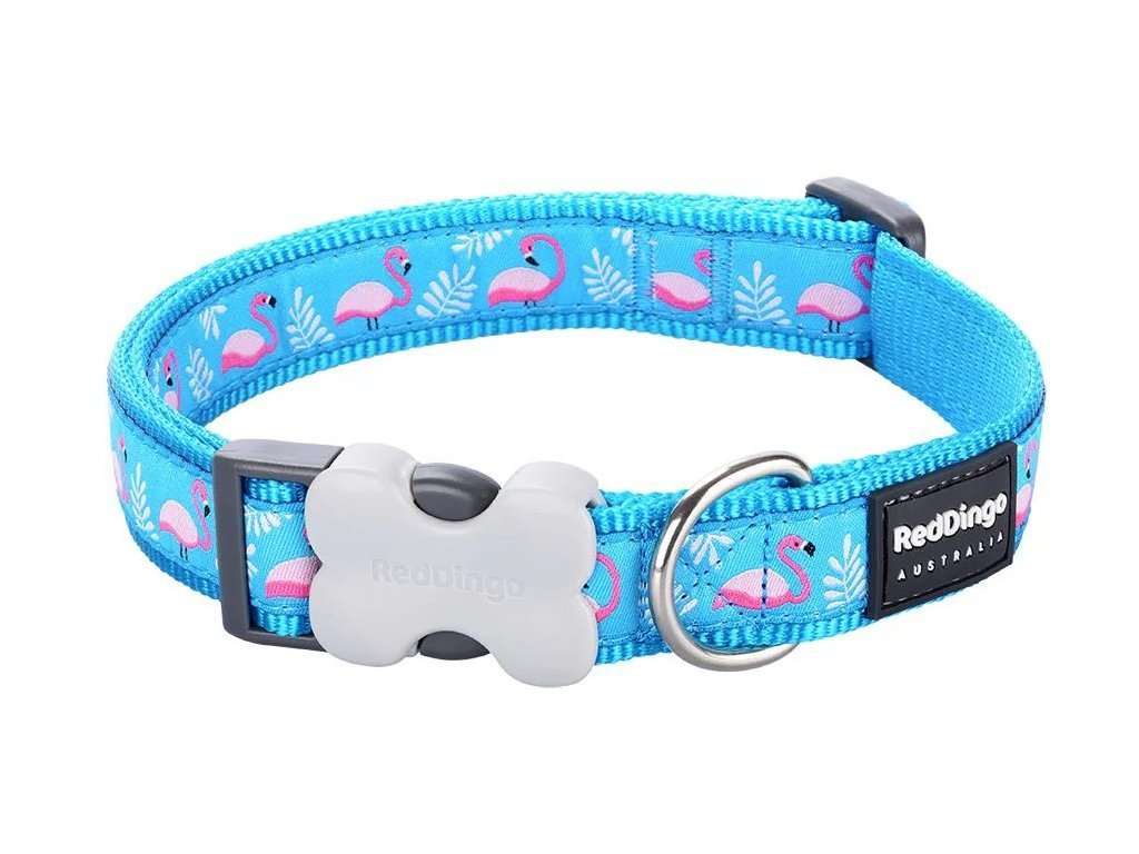 Obojek Red Dingo je vyrobený z vysoce kvalitního nylonového popruhu. Okraje obojku jsou hustě tkané pro ještě větší odolnost vůči oděru. Našitá stuha s originálním vzorem je utkaná speciální technikou, která zaručuje vysokou odolnost a trvanlivost obojku Red Dingo. Použitá příze zajišťuje skutečnou stálost barev. Vzor Flamingo Turquoise
