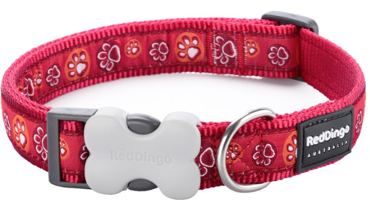 Obojek Red Dingo je vyrobený z vysoce kvalitního nylonového popruhu. Okraje obojku jsou hustě tkané pro ještě větší odolnost vůči oděru. Našitá stuha s originálním vzorem je utkaná speciální technikou, která zaručuje vysokou odolnost a trvanlivost obojku Red Dingo. Použitá příze zajišťuje skutečnou stálost barev. Vzor Paw Impressions Red