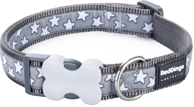 Obojek Red Dingo je vyrobený z vysoce kvalitního nylonového popruhu. Okraje obojku jsou hustě tkané pro ještě větší odolnost vůči oděru. Našitá stuha s originálním vzorem je utkaná speciální technikou, která zaručuje vysokou odolnost a trvanlivost obojku Red Dingo. Použitá příze zajišťuje skutečnou stálost barev. Vzor Stars White on Grey