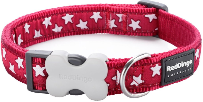 Obojek Red Dingo Stars White on Red