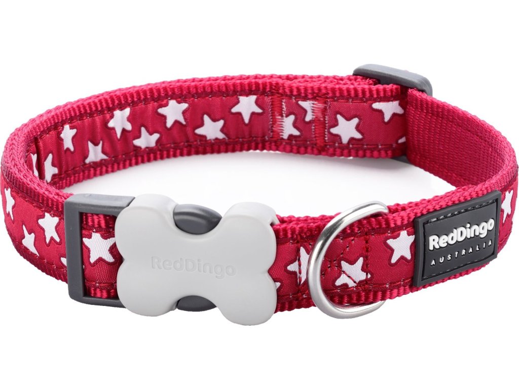 Obojek Red Dingo Stars White on Red