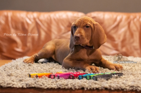 Štěně plemene Maďarský ohař krátkosrstý s RED DINGO obojky , photo by Klára Olivová