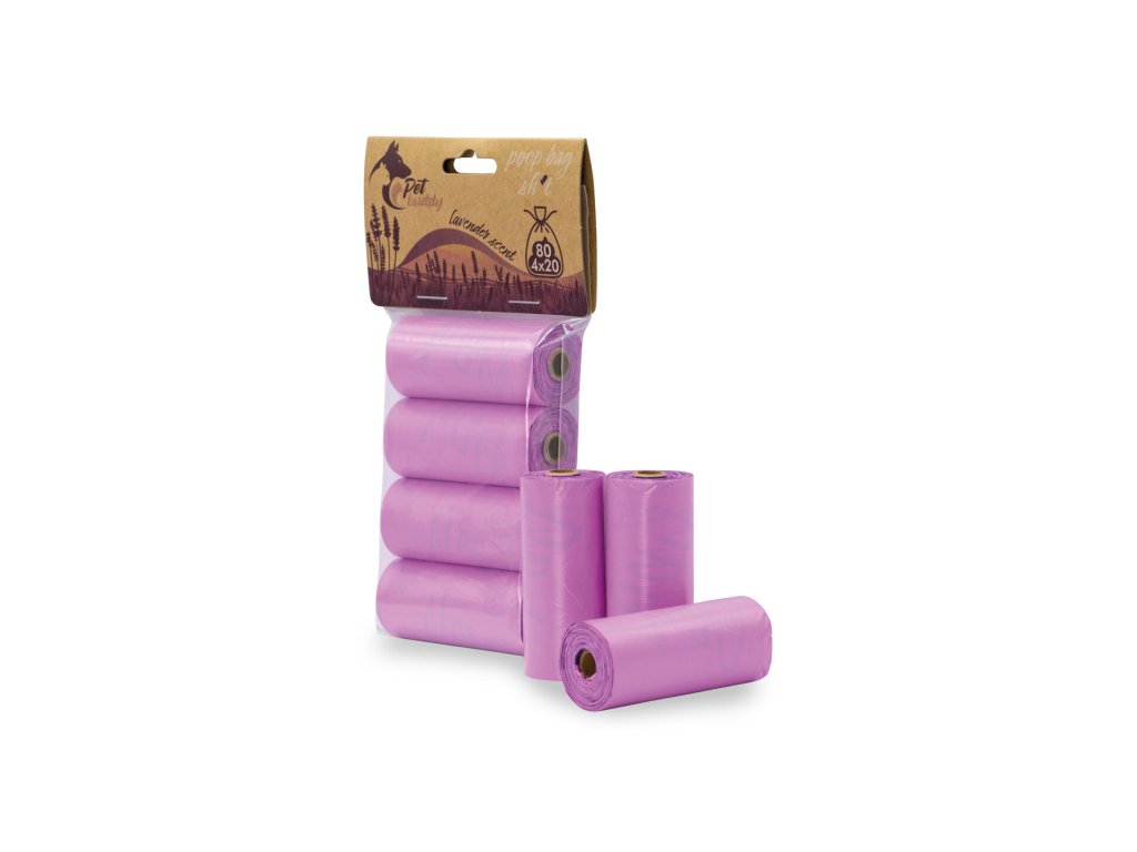 🐾 PetBuddy sáčky na psí exkrementy LEVANDULE – 4 role / 80 ks