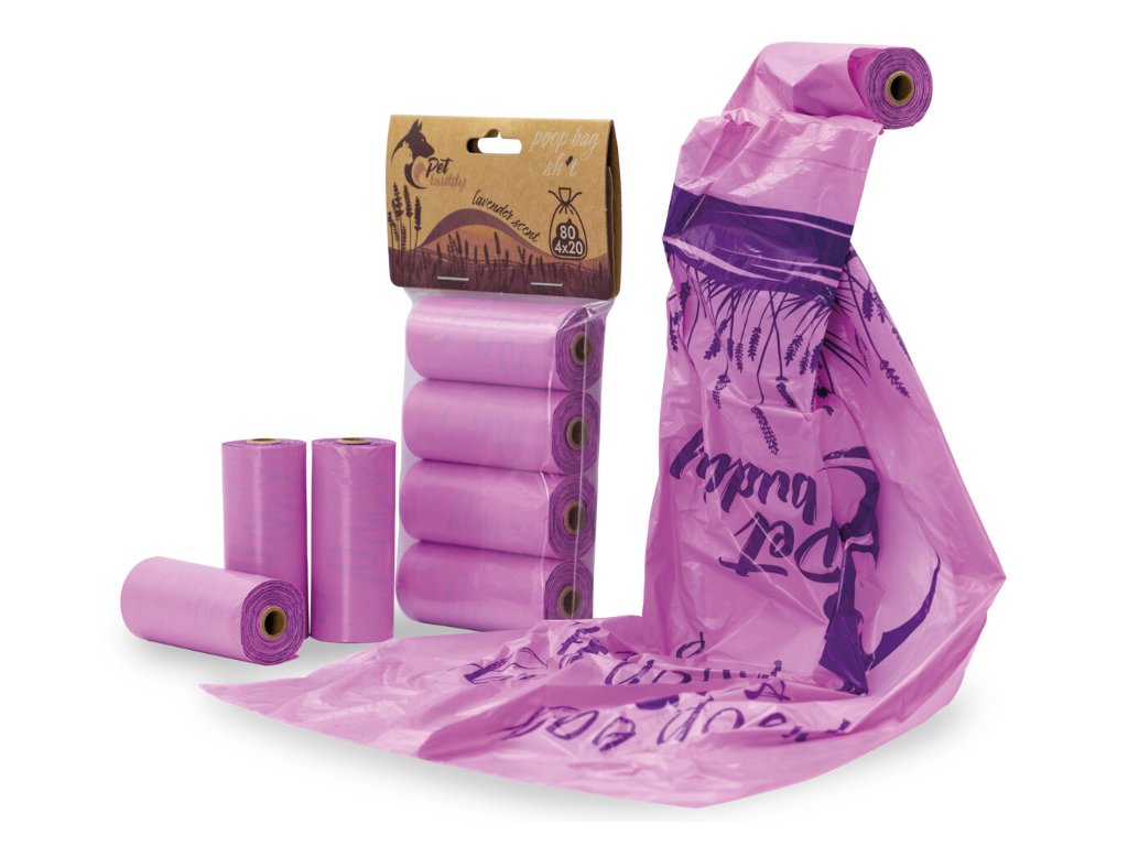 PetBuddy sáčky na exkrementy LEVANDULE 4 role/ á 20 - 80 ks s potiskem a vůní