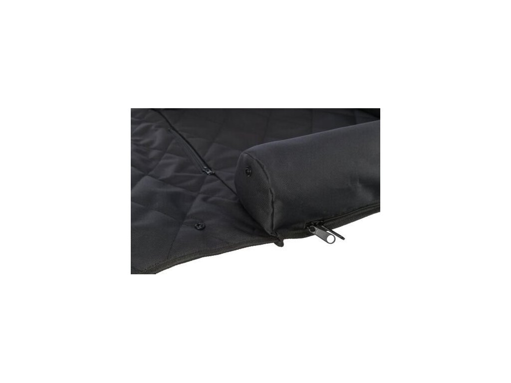 Autopotah s polštářovými bočnicemi proti špíně a zvířecím chlupům. Otvor na pás umožní připoutání psa. Jednoduché upevnění za opěrku hlavy.