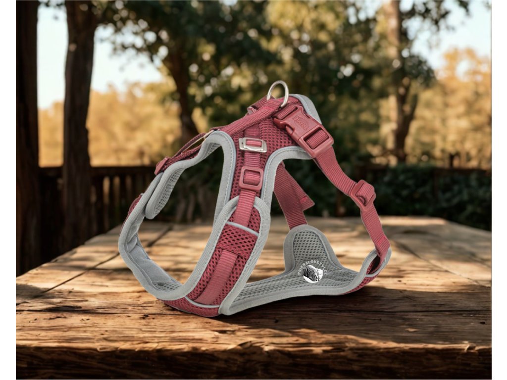 Postroj FlexMesh Premium široký Buldoček, Mops, Bullterrier - Sangria