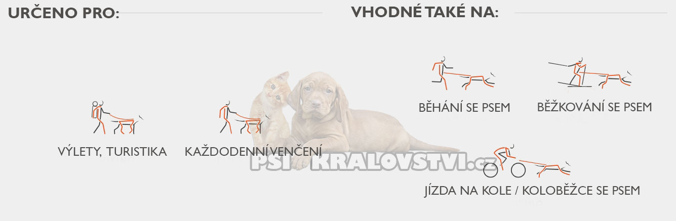 Postroj je možné využít nejen při procházkách, ale také při obranách, dogtrekkingu, canicrossu nebo flyballu. Při všech aktivitách poskytne postroj Line psovi to největší pohodlí.
