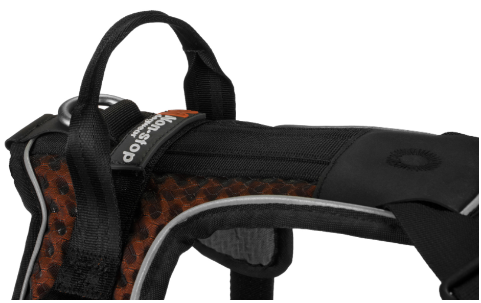 Postroj má na zadní straně rukojeť pro větší kontrolu. Rukojeť lze také použít jako pomůcku pro psa při překonávání překážek na silnici.