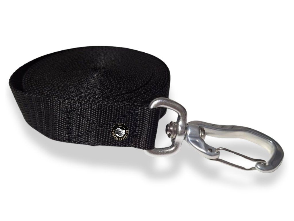 Pevné, lehké a maximálně spolehlivé stopovací vodítko pro bezpečné venčení i výcvik velkých psů. Ideální volba pro majitele, kteří chtějí mít psa pod kontrolou, ale zároveň nechtějí tahat zbytečně těžké vodítko. Tohle stopovací vodítko je navržené přesně pro velké a silné psy – udrží tah, ale nezatíží ruku. Klíčem je lehounká hliníková karabina, která váží pouhých 16 g, a přesto bezpečně udrží psa až do 55 kg. Barva černá.