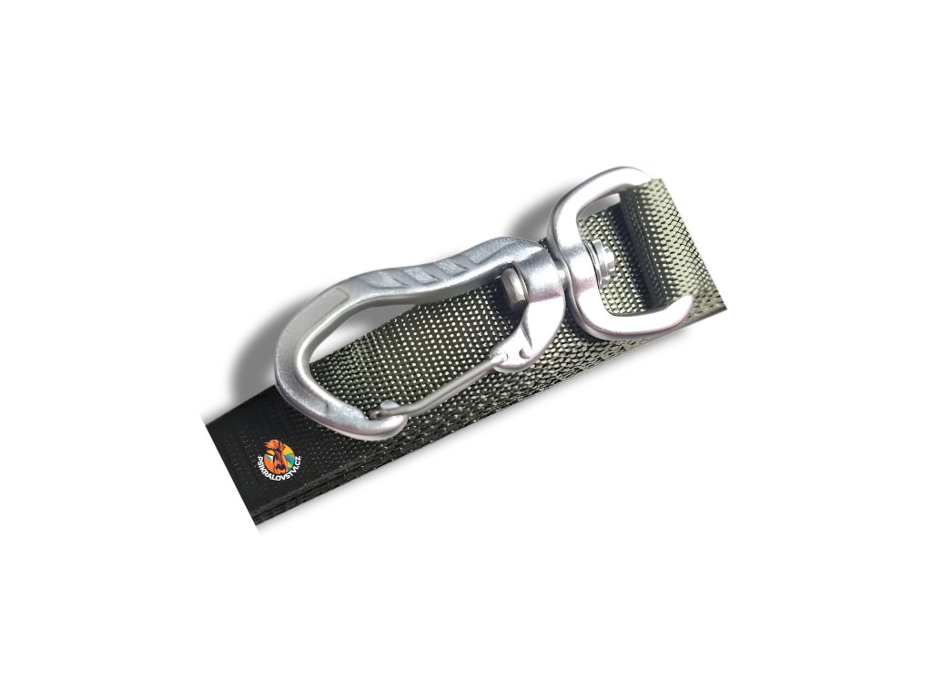 Klíčem je lehounká hliníková karabina, která váží pouhých 16 g, a přesto bezpečně udrží psa až do 55 kg.