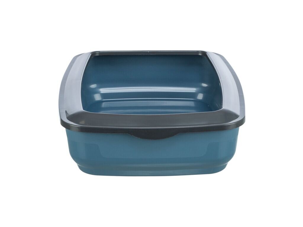 Toaleta pro kočky s okrajem, který zabraňuje vyhrabávání steliva z toalety