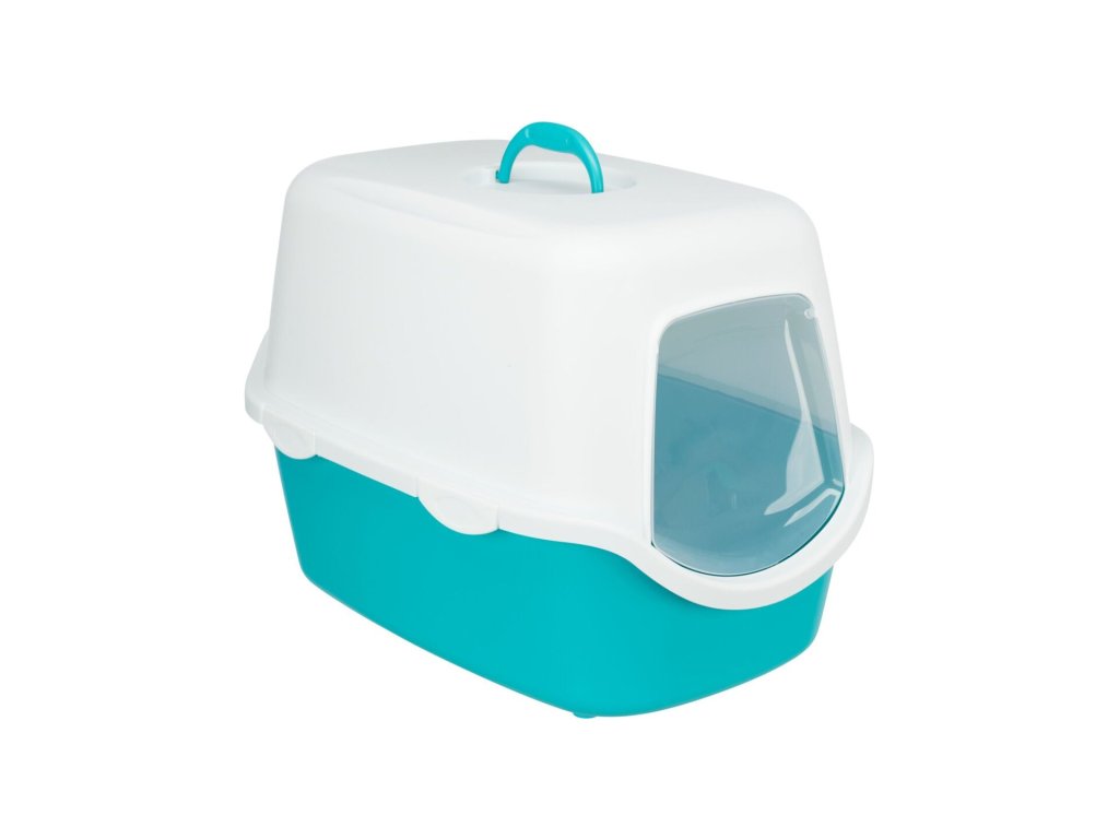 WC pro kočku kryté Domek VICO 40x40x56cm TYRKYS/BÍLÁ